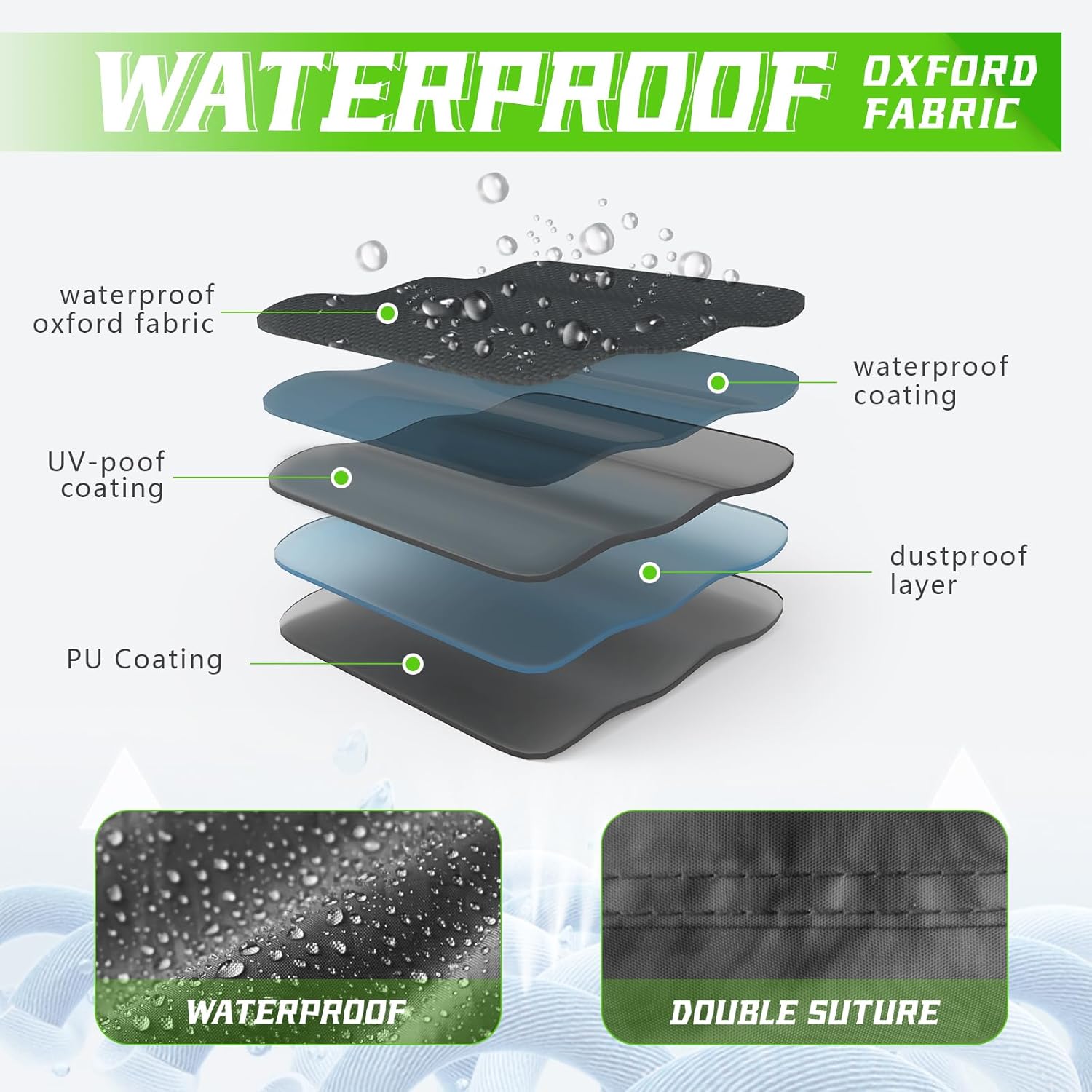 - Heavy Duty Oxford Fabric: Made of 210D premium polyester fabric, lightweight, super soft and designed with double stitching to be more waterproof than ordinary materials.Keeps your motorcycle completely dry and clean, even in the rain