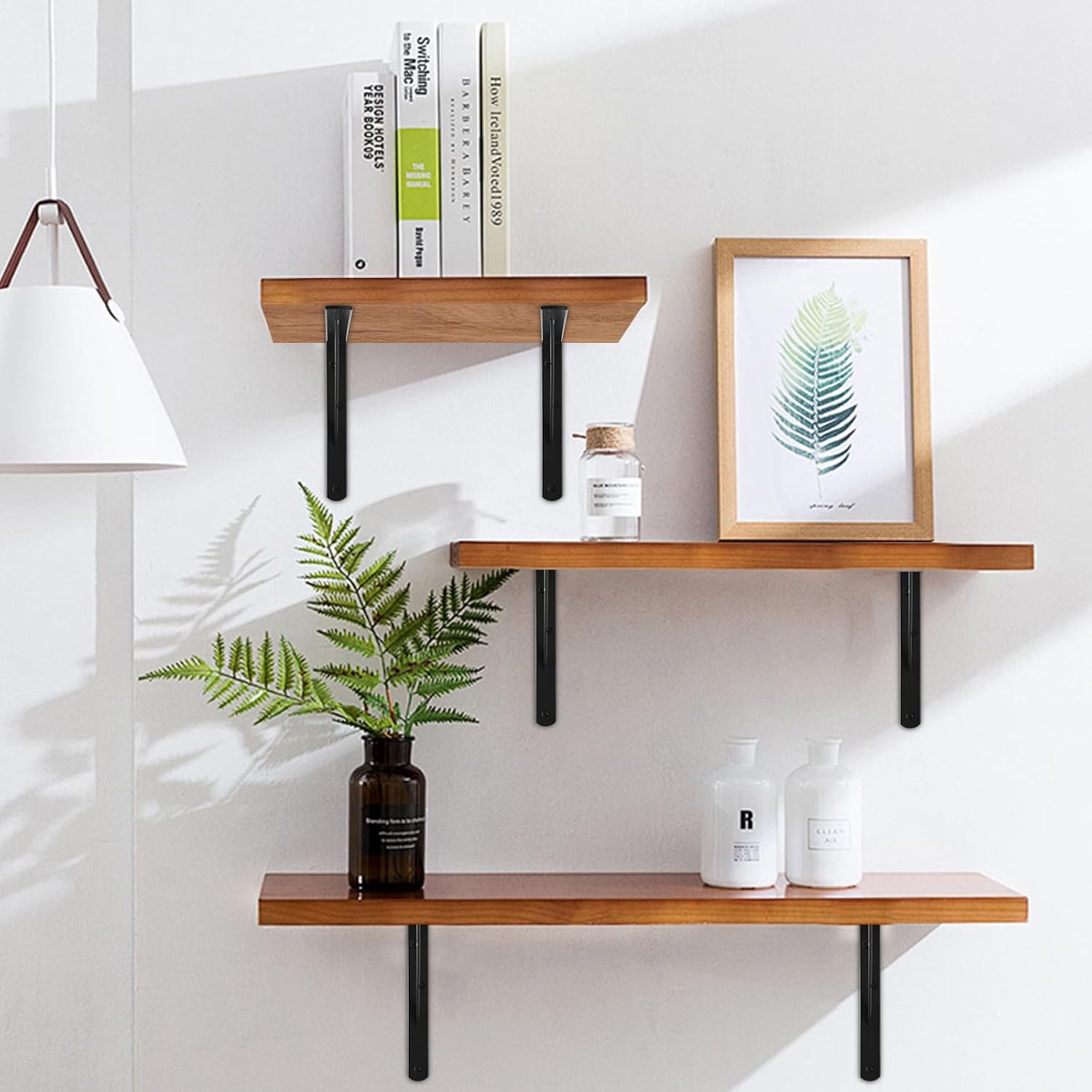 - Size:L 12" x H 8" x W 1", 3mm Thick. Package included: 12 x Brackets , 36 x long Screws, 36 x short Screws(Wood plank is Not included)Our floating shelf brackets come with 12 brackets for your wall mounted shelves.Our heavy-duty brackets can support Audio Equipment,bookshelf,kitchen ware,electric power tools , TV bench ,farm tools,etc.