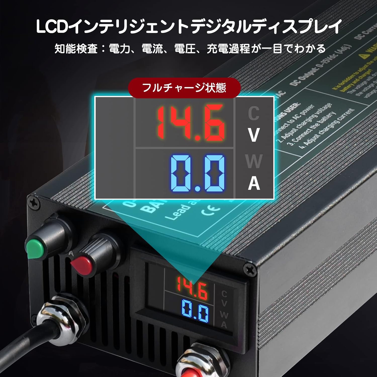 - ✔【Designed for Lithium-Ion Batteries】Capacity. Li 12.6V 14.6V 60A LiFePO4 Lithium Battery Smart Charger is specially designed for 12.8V LiFePO4 battery or 12.6V Li-ion battery, the voltage is adjustable, the range is 0-15V adjustable. Do not use the charger on a metal surface platform. Buyers have any questions please email me. We will help you solve it as soon as possible.