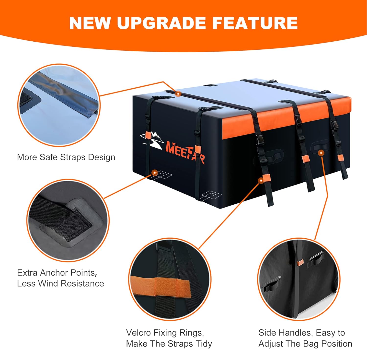 MeeFar Rooftop Cargo Carrier Car Roof Bag 21 Cubic Feet 100% Waterproof Car Top Carrier, Fits All Vehicle with/Without Rack,Include Anti-Slip Mat,10 Reinforced Straps,6 Door Hooks,Luggage Lock