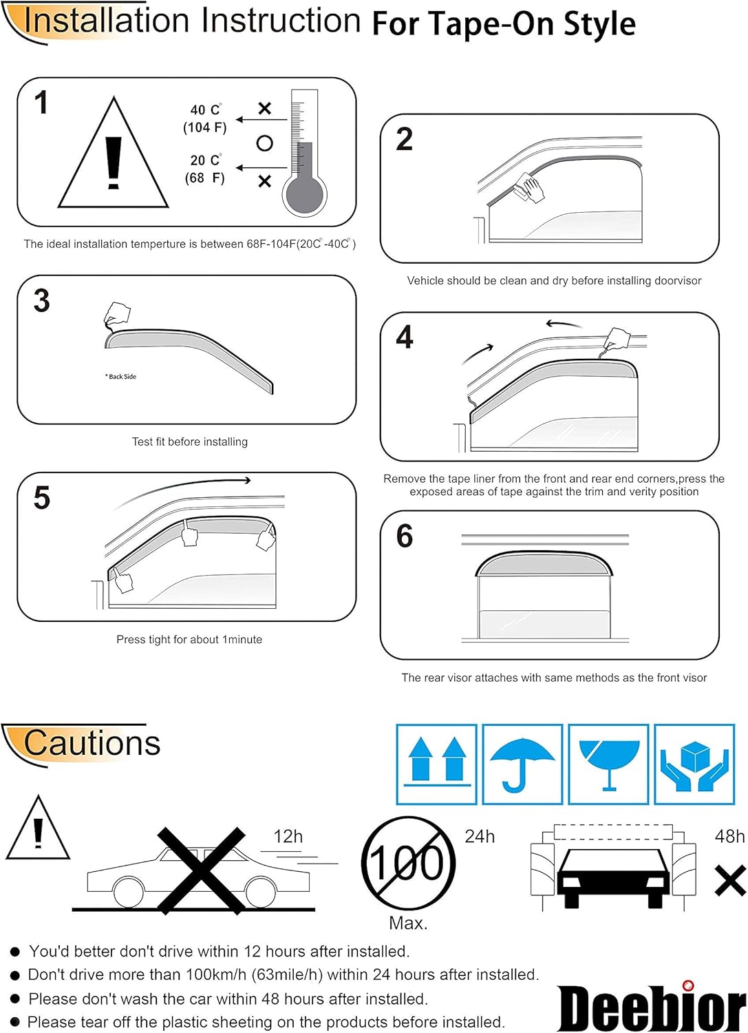 - EASY INSTALLATION:Direct Tape-On design,easy Peel-N-Stick installation and no disturbed in the windows up and down.Easy to remove will not affect your car appearance(No Cutting & No Drilling)