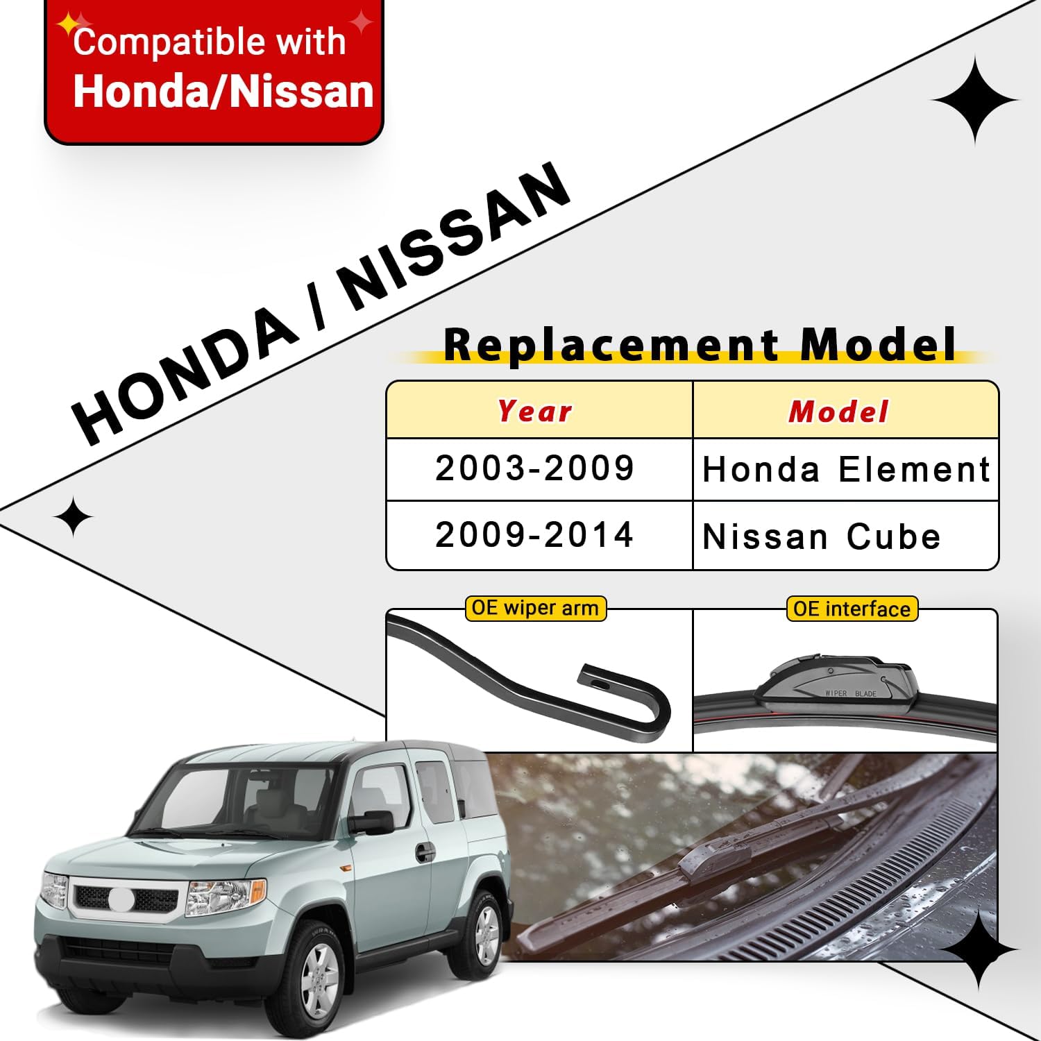 - Vehicle Service Type : 2003-2009 Honda Element, 2009-2014 Nissan Cube