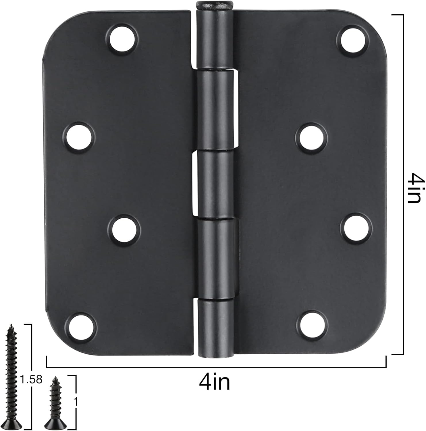 3 Pack Black Door Hinges Matte Black 4 Inch 5/8" Radius Hinges for Doors 4 Inch Exterior/Interior Door Hinge Rounded Gate House Front Door Hinges Standard Residential Heavy Duty Door Hardware