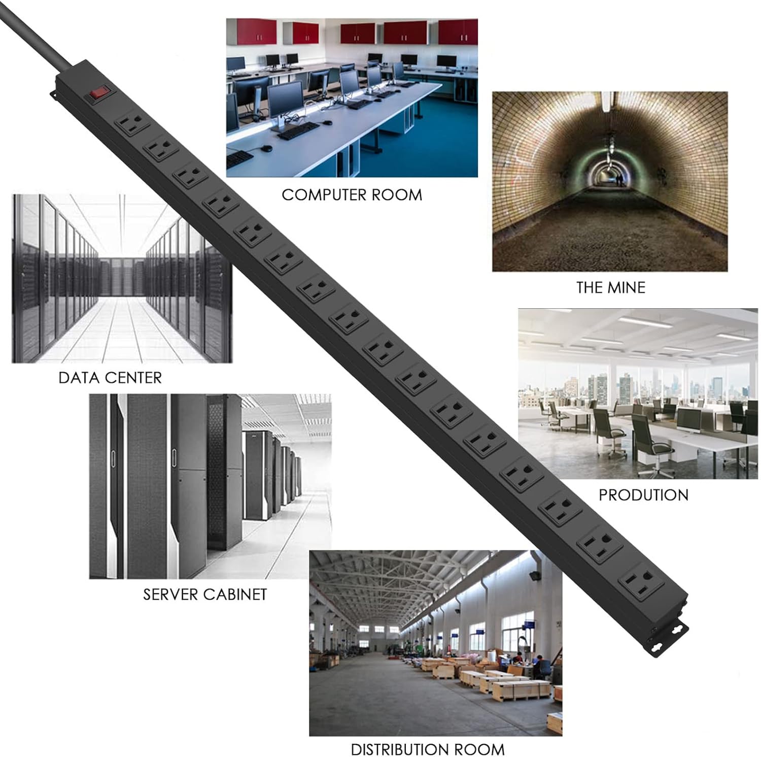 HHSOET Metal Wall Mount Power Strip, 16 Outlets, 3 FT SJT 3/C 14AWG Power Cord, 15A 125V 1875W, Black