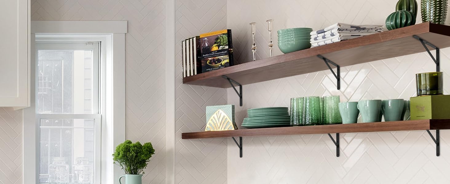 - 12-Pack shelf brackets: Maximize space with with style. Ideal for the kitchen, bathroom, bedroom, office & more. Our shelf brackets can be used as exhibition stand,bicycle stand,garden shelf, kitchen shelf,office shelf,etc