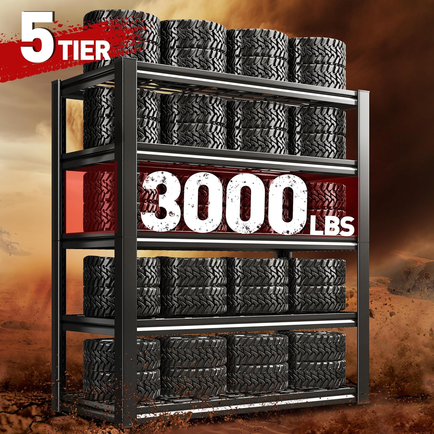- ă3000 LBS Capacity Sturdy & Storage ShelvesăREIBII garage shelving heavy duty has thickened double metal legs.Shelving is made of high-quality metal, instead of flimsy particle board, sturdy and stable than ordinary garage storage shelves. Each garage shelving capacity 600 lbs