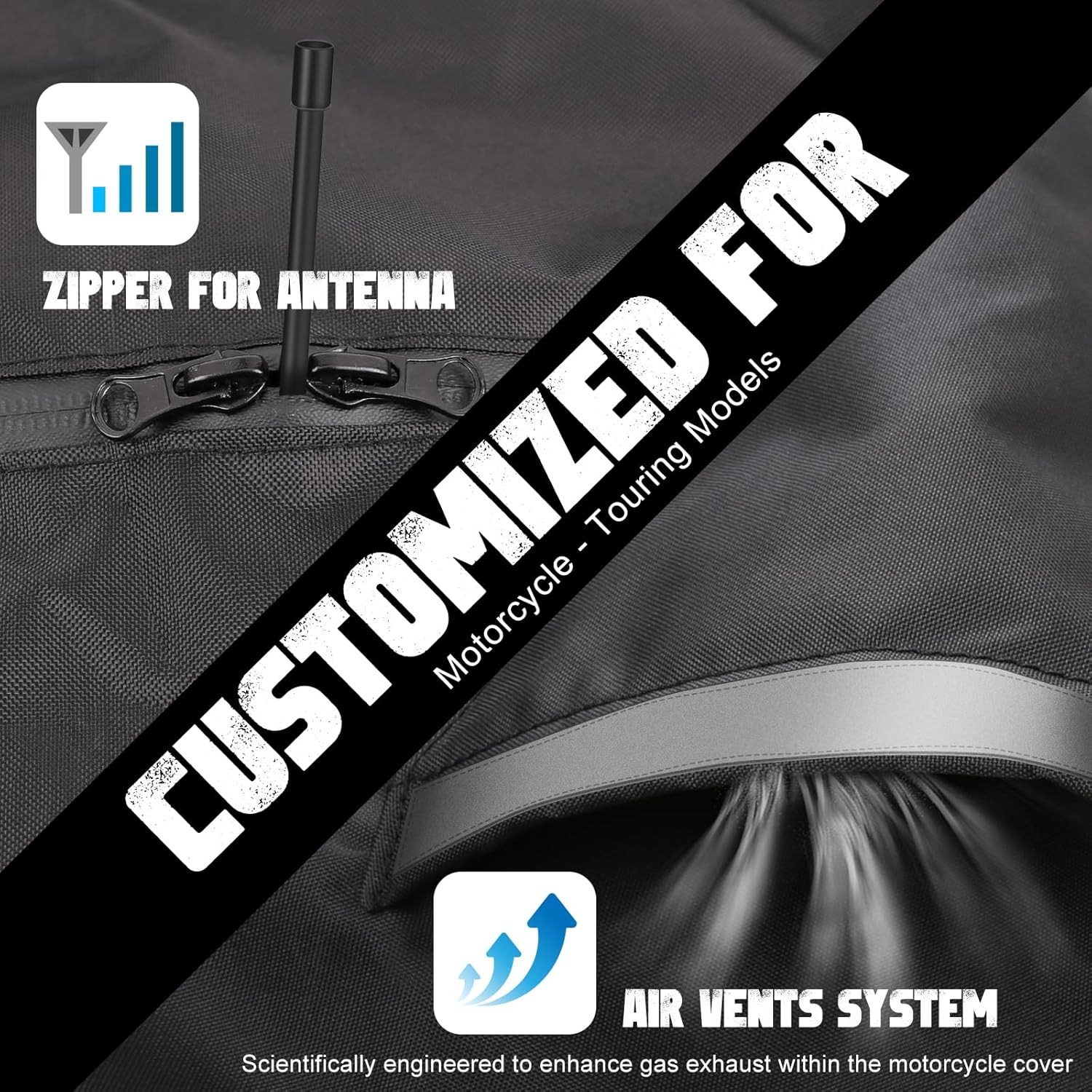 - Suitable for Most Motorcycle fo Touring Models: 107 "L x 39" W x 55 "H stereo cutting, and the widened rear cover design is suitable for most rear side boxes and motorcycle touring, Harley Davidson/INDIAN/HONDA/BMW/Triumph Tiger/DUCATI/SUZUKI/KAWASAKI/KTM-(Touring models).