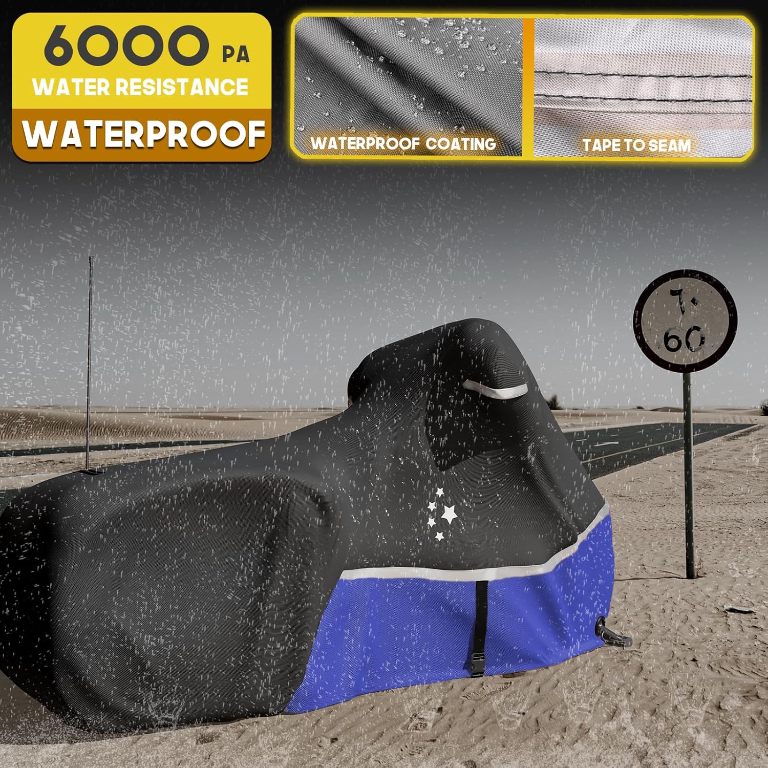 Motorcycle Cover Storage for Touring Models Harley Davidson Road King,Road Glide,Street Glide, Electra Glide,Heritage Classic,Low Rider-ST,and Most Motorcycles Blue