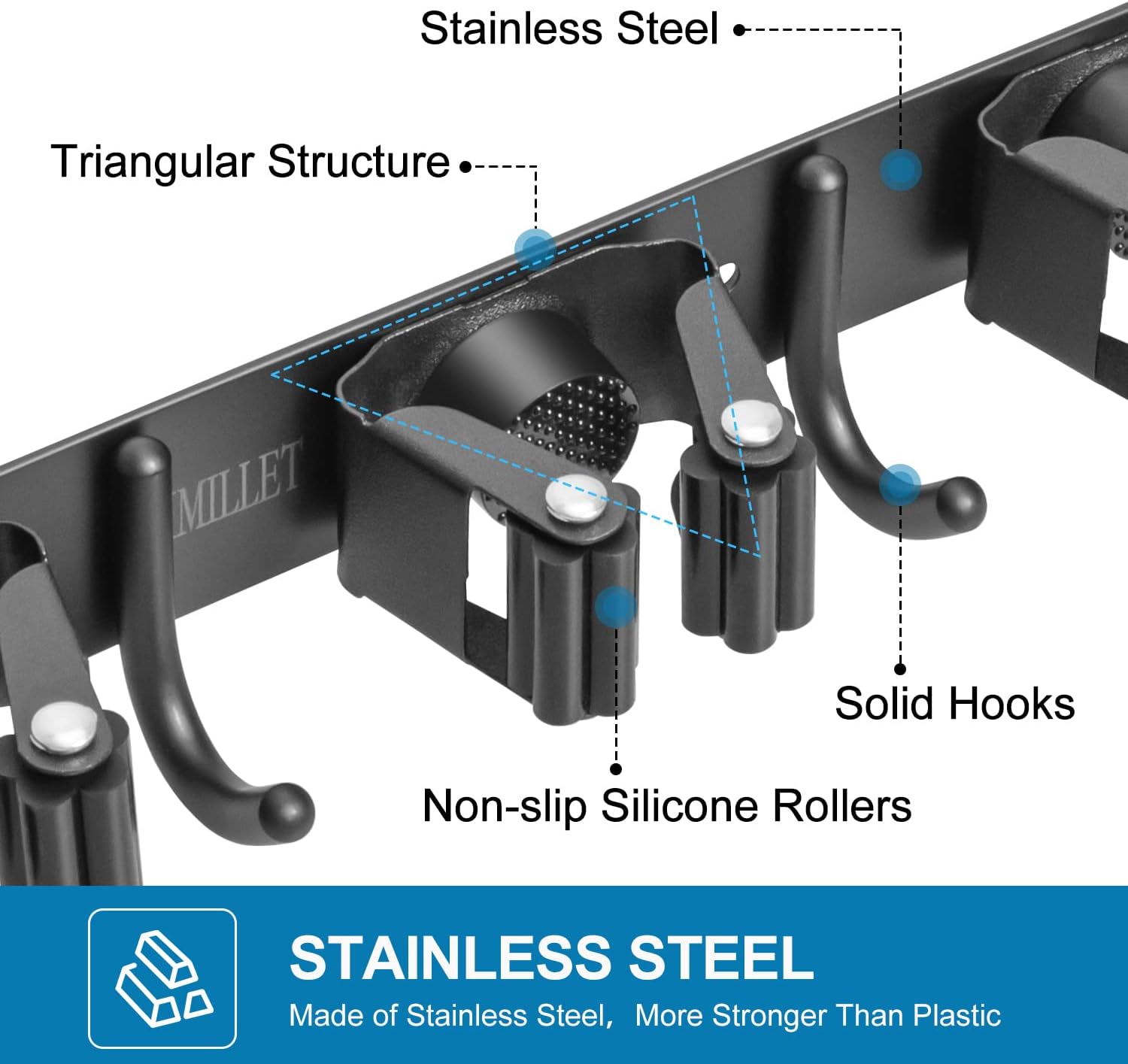- Heavy Duty: Mop holder grip everything tightly and securely without slip. It can hold up to about 9 tools in total. Keep your place cleaned up and keep things organized