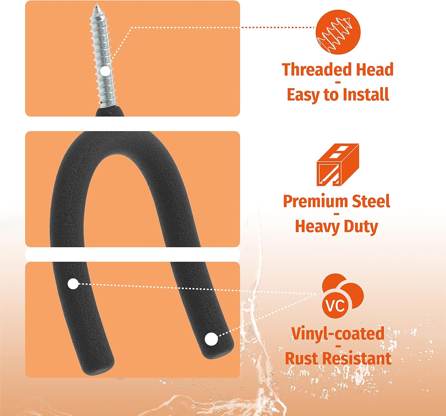 - VINYL-COATED FINISH - Also, the garage hooks are rust-resistant with Vinyl-coated finish. Each tool hanger has a tough super grip, the Vinyl-coated finish can effectively protect the tools and will not cause scratches.