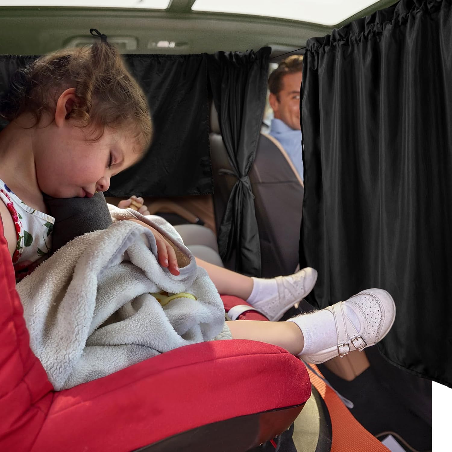 - 【3 Curtain Set】Our products include 1 pcs long rear seat divider curtain, 2 pcs side windows curtains and 1 pcs storage bag. This set of car curtains provides good shade, so you can rest assured that you can enjoy a cool travel time in the back seat of your car. It can also effectively help you make the back seat of your car a perfect private space.