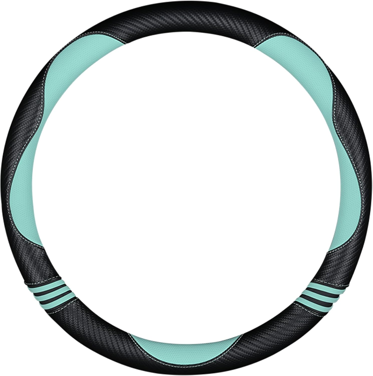 Car Steering Wheel Covers for Women Padded Carbon Fiber PU Leather Cute Auto Interior Accessories for Vehicle, Sedan, Universal, Anti Slip, Green, Standard Size 14.5-15"(37-38cm)