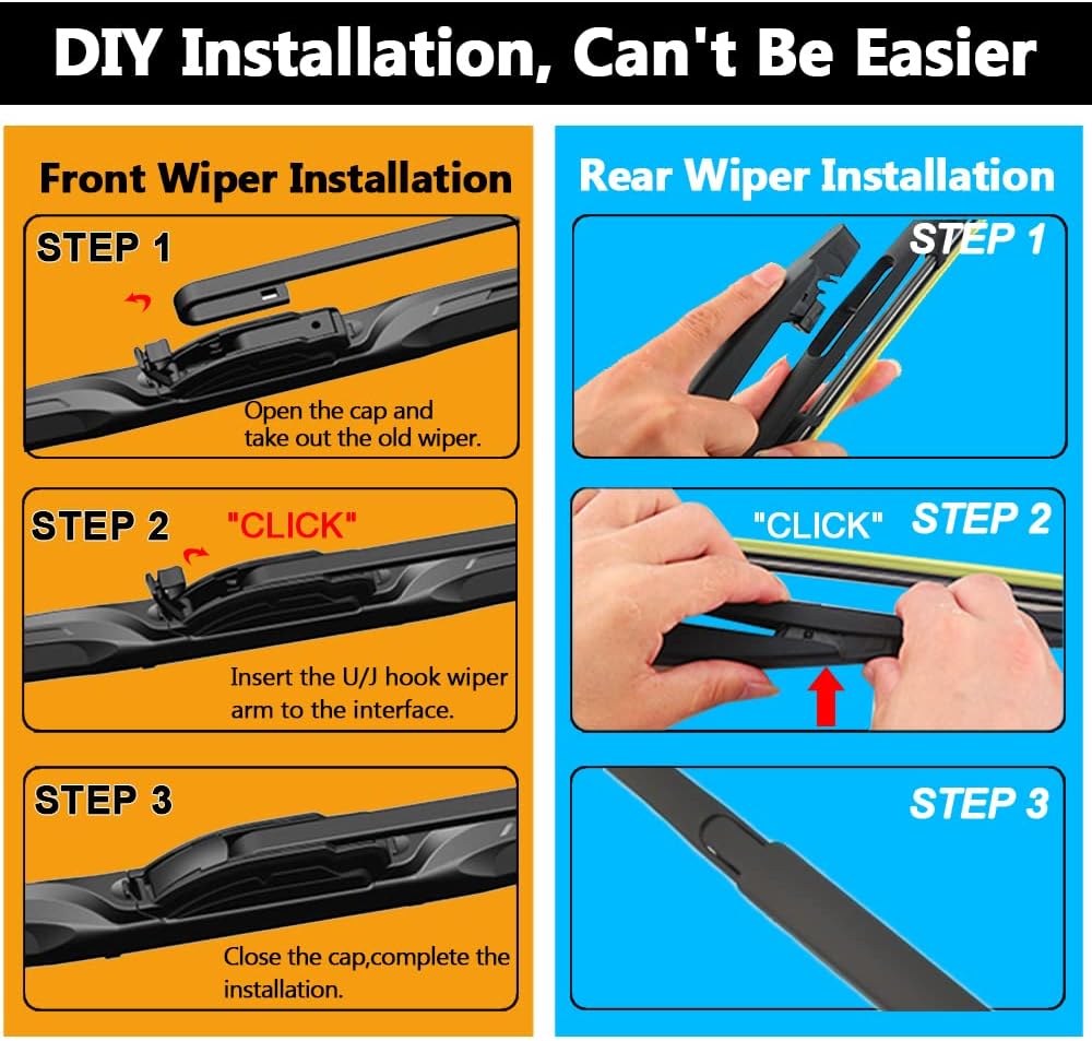 - WHAT YOU GET:Complete set of 3 wiper blade : (Left and right and Rear),â SUPER CUSTOMER SERVICE â AUTOBOO windshield wipers provide 24-hour online service, 6-month-returning freely.
