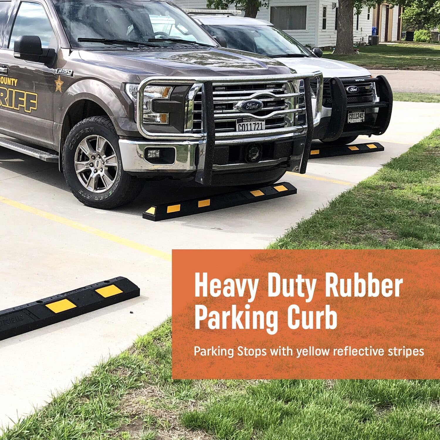 - PARKING LOT ACCESSORIES. Install these in your garage or driveway to keep the front of your vehicle safe from damage. Pack includes 10 Parking Wheel Stops, each of size - 4 x 72 x 6 inch (H x W x D).