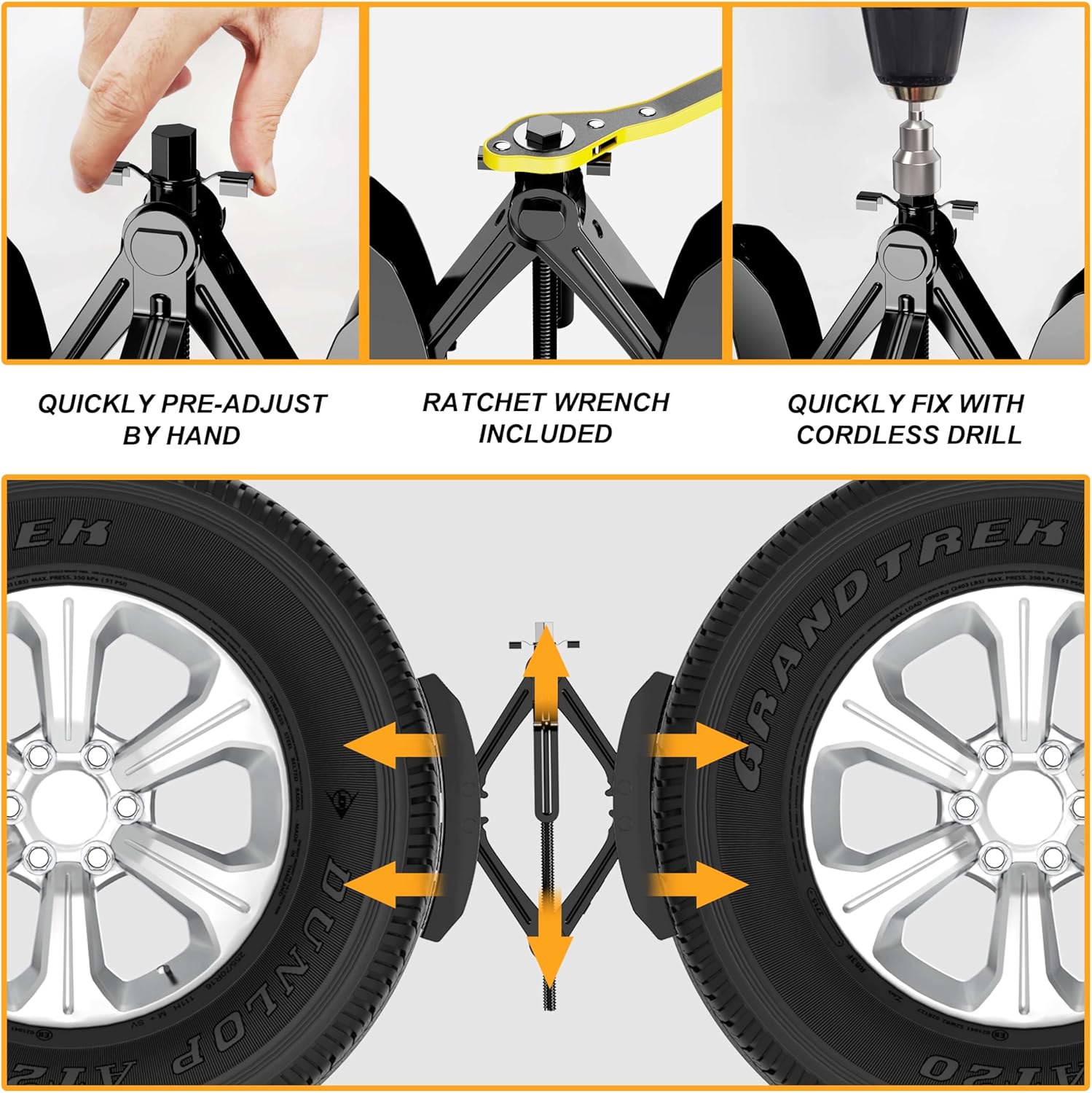 - Easy to Store and Easy to Use: Package contains a high-quality multifunctional ratchet wrench and hex socket for easy and speedy installation the chocks wheel stabilizer within 20 seconds, you can use a ratchet for quick fixing and a drill for quick installation. These convenient tools make your parking more time-saving and more effortless.