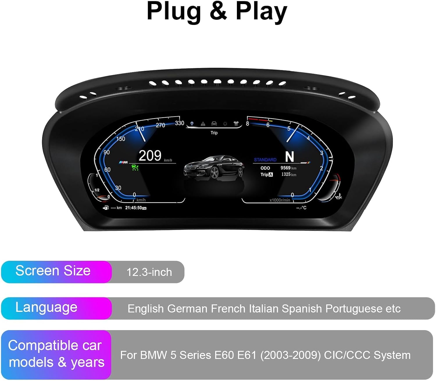 - 🚗[Applicable Models] The LCD digital instrument cluster is precisely customized for BMW BMW E70/E71 2006-2013 CCC CIC system. It is equipped with a 10 inch high-definition screen boasting a resolution of 1920*720. Supports all original features