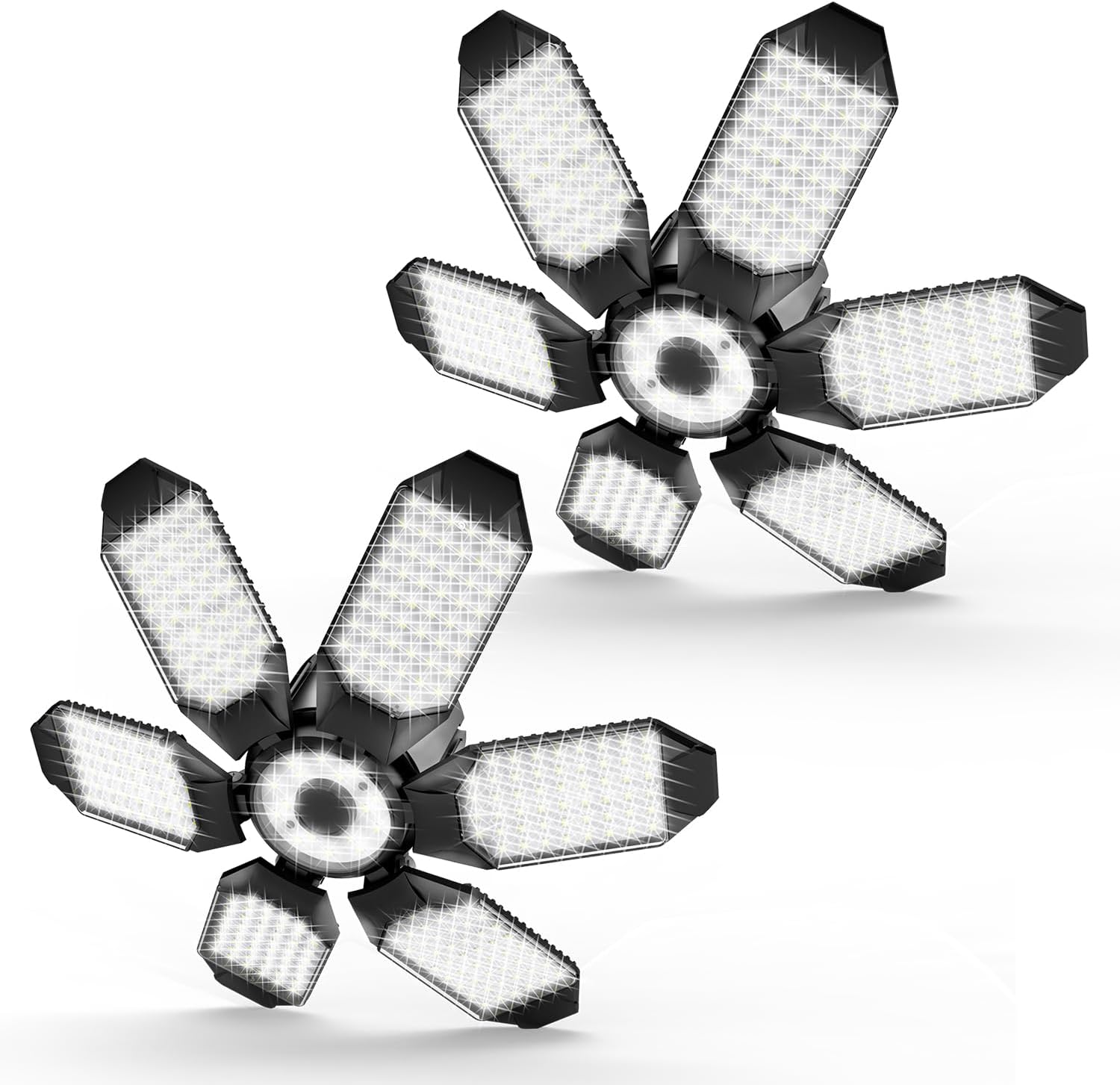 Garage Lights - 2Pack Super Bright 32000LM LED Garage Ceiling Light 6500K LED Shop Light w/ 6 Deformable Panels Screw in E26/E27 Socket Light Bulbs for Workshop Storage Warehouse Attic