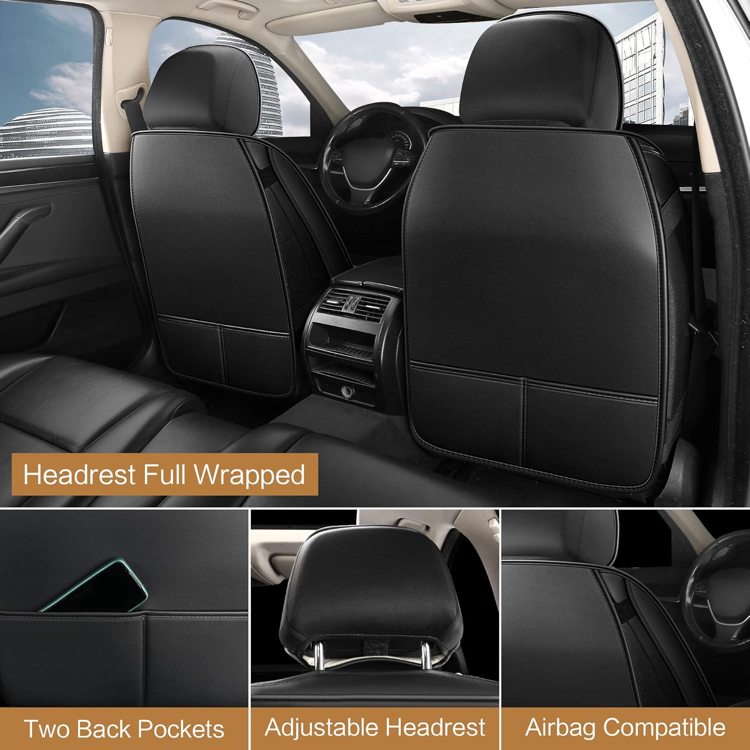 - Stylish & Luxurious: These are the perfect seat covers for your car. High-quality artificial leather and excellent appearance design refresh your car instantly, beautify the car interior and bring joys to your life.