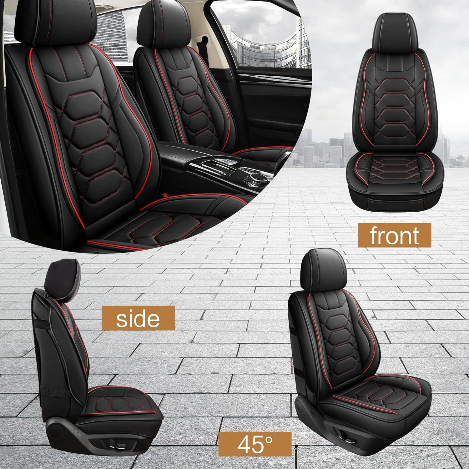 Pariitadin Leather Car Seat Covers Front Pair, Waterproof Faux Leather Seat Covers for Cars, Non-Slip Car Interior Covers Universal Fit for Most Cars Sedans Trucks SUVs, Black/Red