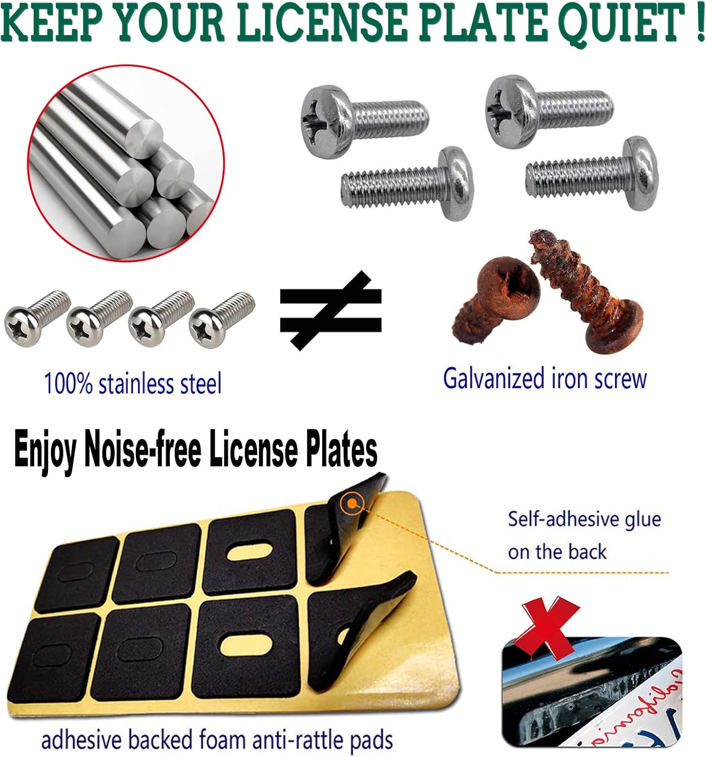- Rattle Proof License Plate Frame - The black license plate holder set is equipped with a black foam shock-absorbing license plate pad, protect the car paint and reduce the rattle of the metal license plate. 2 Pack American Flag stickers with Thin Blue Line decal as bonus, 2.5" X 4.5", Weatherproof, UV & Water Resistant, easy to apply to any smooth surface. Perfect decal sticker for the decoration of Autos, SUVs, windows, bumpers, etc. Express your patriotism with personality