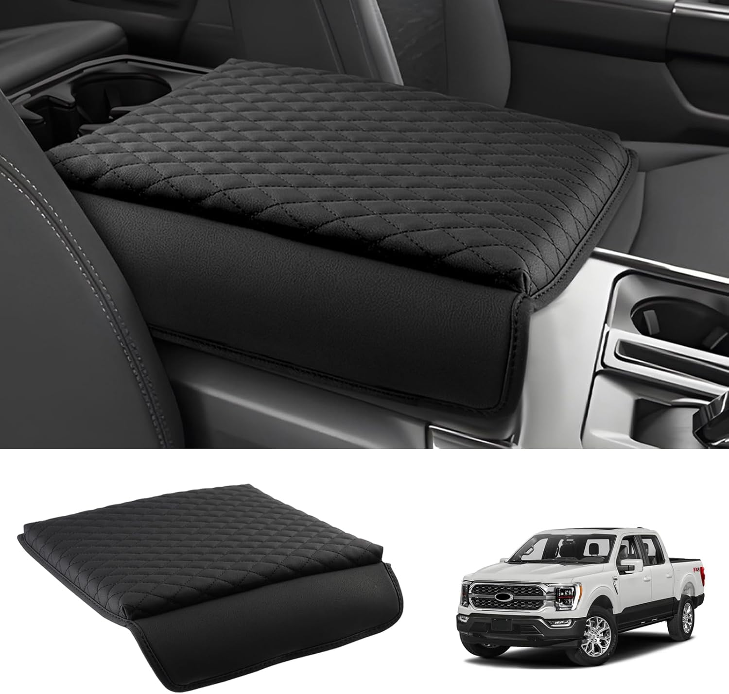 - Quick To Install: The Ford F-150 middle console cover is designed with 3 flexible non-slip backing elastic straps to keep the cushion stably stay in place. No tools are required, the seat central box lid pad is easy to cover on your armrest box. Does not interfere with arm rest opening or closing. Give your Ford F150 console lid a great protection!