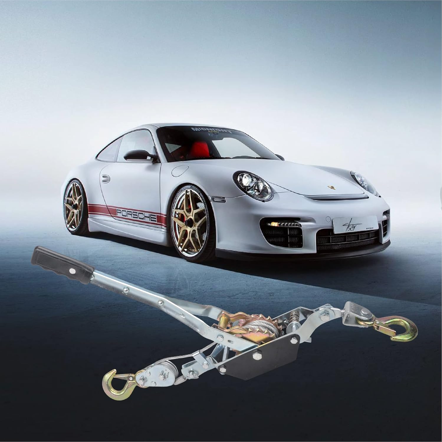 4 Ton Heavy Duty 2 Hook Steel Cable Dual Gear Power Puller Come Along Chain Winch Ratchet Tool, Automotive Hoist Hand Winch Cable Puller Stretcher Lift