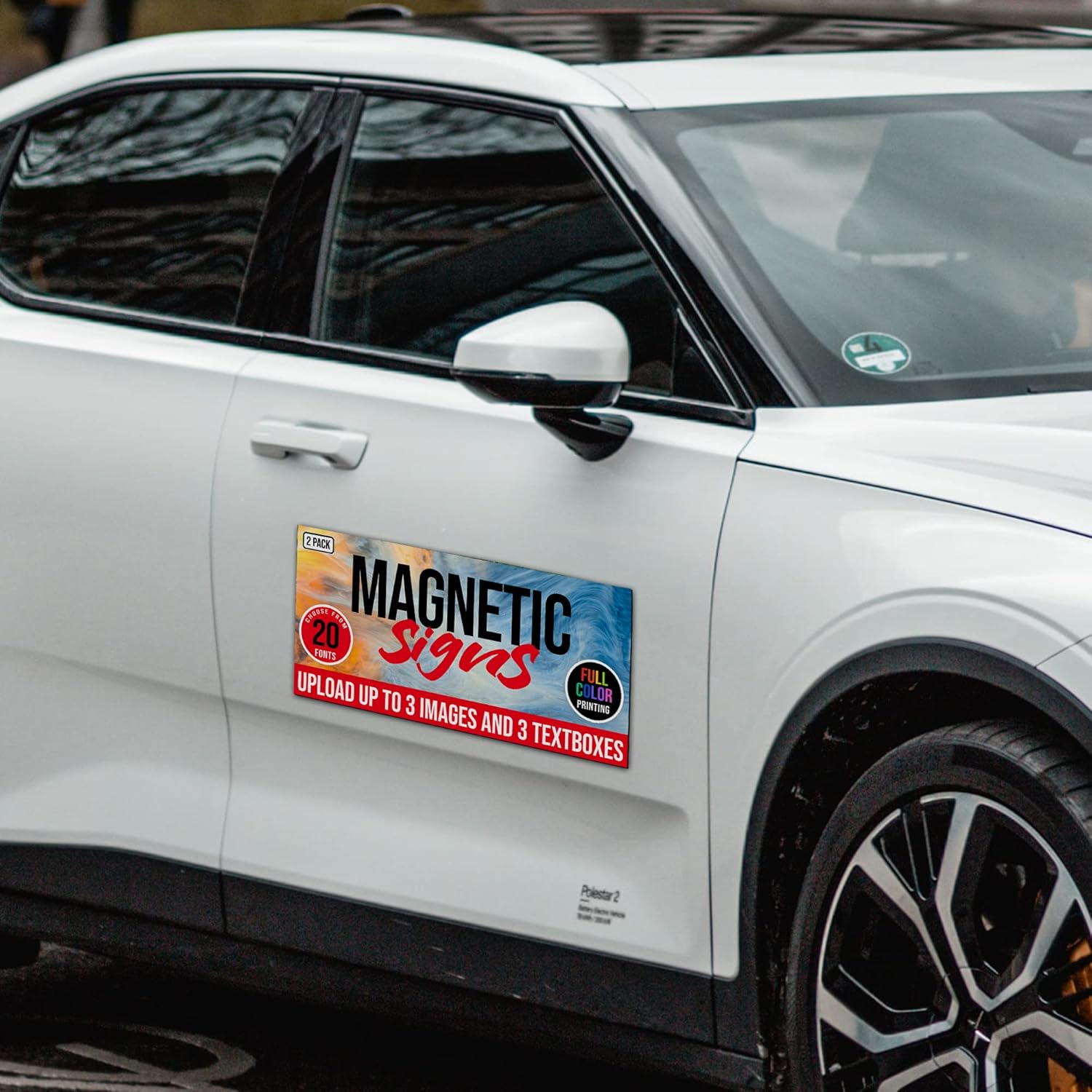 - CUSTOM CAR MAGNET - Promote your business on the go with our 12"x24" custom car magnets. Personalize with your logo, text, or design. These magnetic signs are great for branding cars, trucks, trailers, and storefront doors.