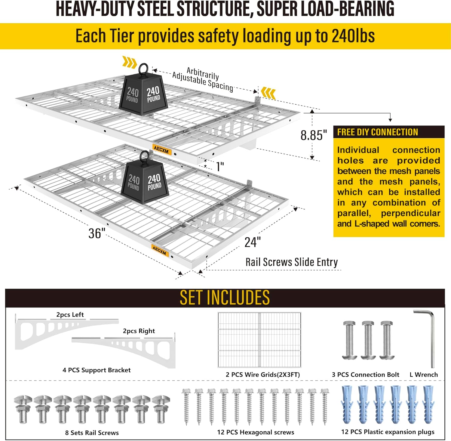 - Easy Installation: Includes all mounting hardware and instructions for hassle-free setup—even one person can do it. This wire shelves for wall helps organize clutter, keeping your garage, pantry, kitchen, or laundry room neat and tidy