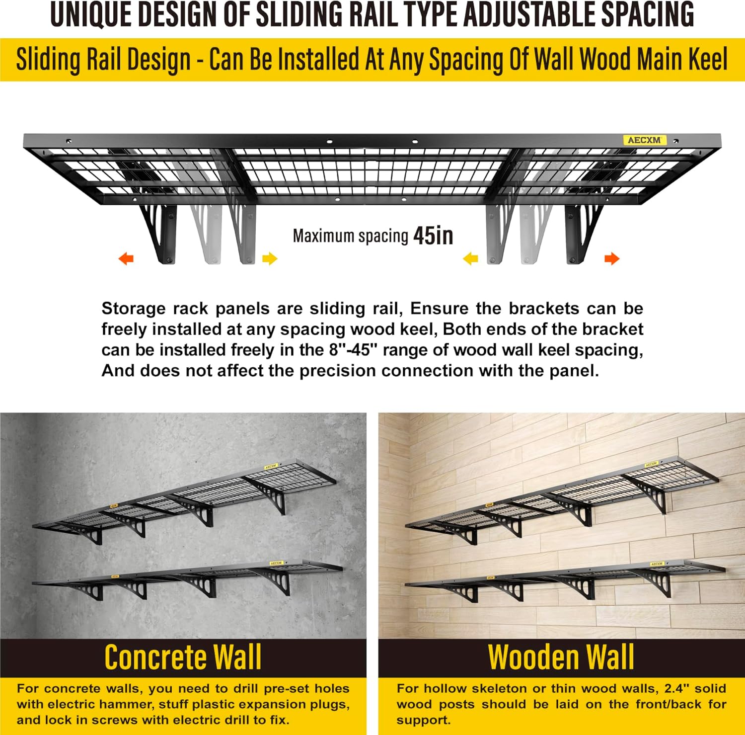 - Innovative Design: Unlike fixed-spacing systems, Aecxm garage storage shelves wall mounted feature sliding rail screws, allowing installation on wood studs spaced anywhere within the 48-inch garage shelf length. No more compatibility issues with uneven stud spacing