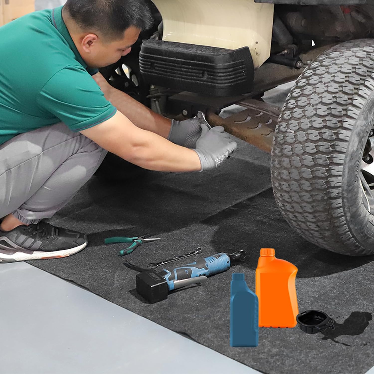 - 【Absorbent material and Watherproof backing】This parking mat absorbs liquid and moisture. And the waterproof layer can prevent liquid from saturating and prevent them from damaging or soiling the floor.It will not be penetrated by battery acid and petroleum products, slide-resistant.