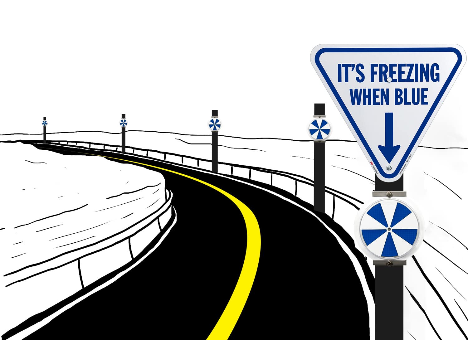 - DURABLE ALUMINUM: 'It's Freezing When Blue' signs are made of 80 mil thick heavy-duty rustproof reflective aluminum that easily lasts 10 years outside and meets DOT road and traffic requirements.