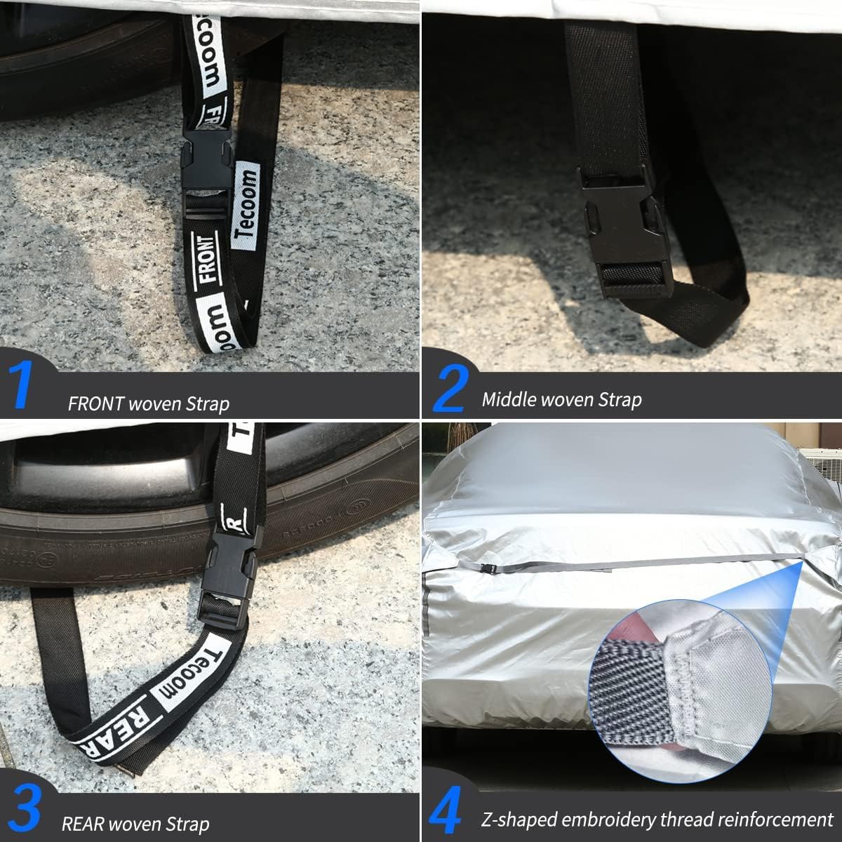 Tecoom Car Cover Waterproof All Weather,Outdoor Full Exterior Covers Without Door Zipper & Mirror Pockets Windproof Sun Uv Rain Hail Protector Car Cover Fit Coupe/Sport Car (173-182 Inches)