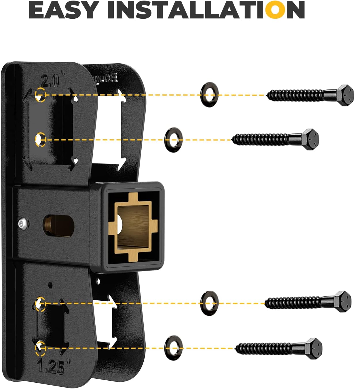 - EASY INSTALLATION: BougeRV hitch wall mount only takes you 5 minutes to complete the assembly with 4 screws & washers included. It is suitable for 1.25 "/2" receivers.
