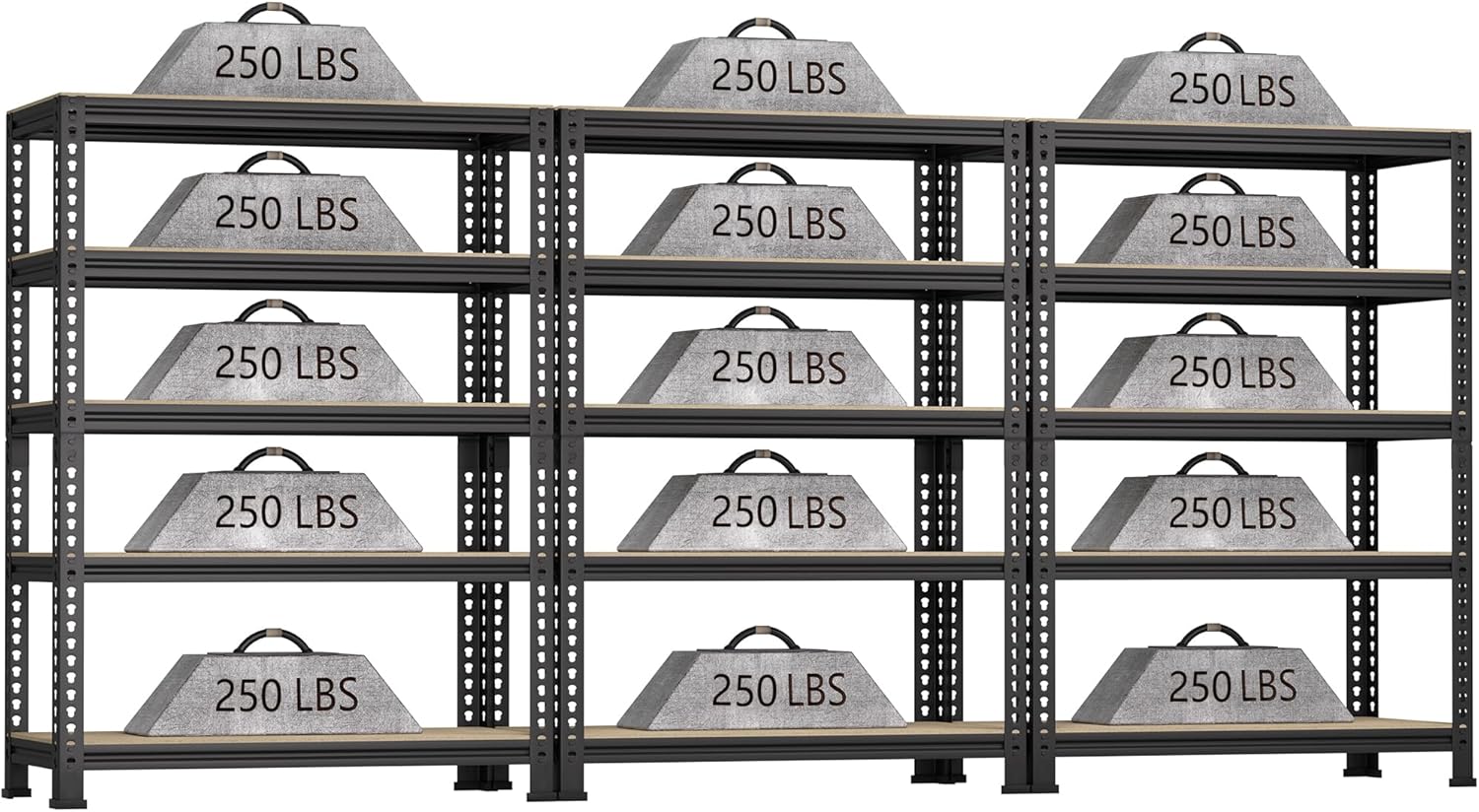 5-Shelf Heavy Duty Shelving - Adjustable Garage Storage Shelves, Metal Utility Storage Racks for Warehouse Pantry Basement Kitchen, Garage Organizers Shef Unit, Black, Packs of 3