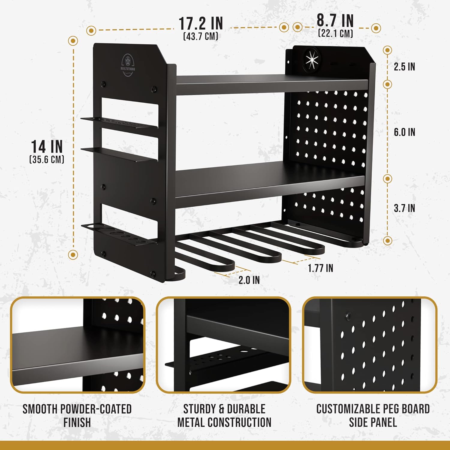 - GET YOUR TOOLSET IN ORDER with the Builtstrong power tool storage rack. Our 3-tier metal storage tool rack comes loaded with unique tool storage and organization features so that you can get the best out of your workspace