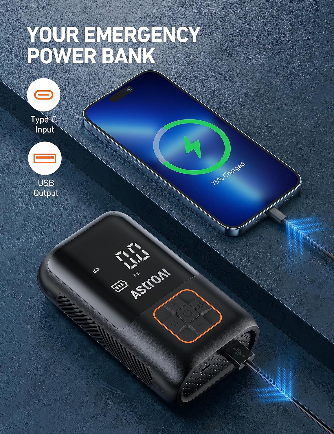 - Battery & DC Power: The air pump uses a dual-power design, switching freely between cordless and power supply. The built-in battery provides cordless inflation while the included 3-meter DC power cord can power the pump when the battery runs out. Make sure your inflation wonât be interrupted by a power shortage. Meet all your daily inflation needs anytime, anywhere. (Please note: It comes with a USB-A to Type-C charging cable. The compatible charging adapter (5V 2A) is not included.)