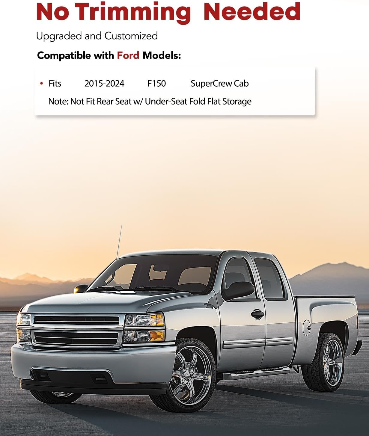 - Perfect Fitment: YHTAUTO floor mats are custom-designed to Compatible with 2015 2016 2017 2018 2019 2020 2021 2022 2023 2024 2025 Ford F-150, 2022 2023 2024 2025 Ford F-150 Lightning SuperCrew Cab, Rear w/o Under-Seat Fold Flat Storage. Keeping your interior clean. Provide comfort and protection in any season in your every trip