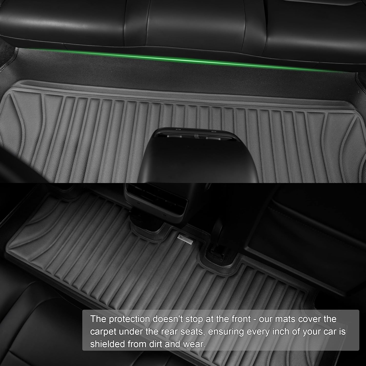 - Ultimate Coverage for Your Tesla Model Y--The Extreme Coverage Floor Mats are designed for Tesla Model Y floor mats with 360° protection, from front footwells to rear seats. The Model Y floor mats feature a triple-layer build—waterproof, cushioned, and non-slip—for unbeatable defense against the elements.