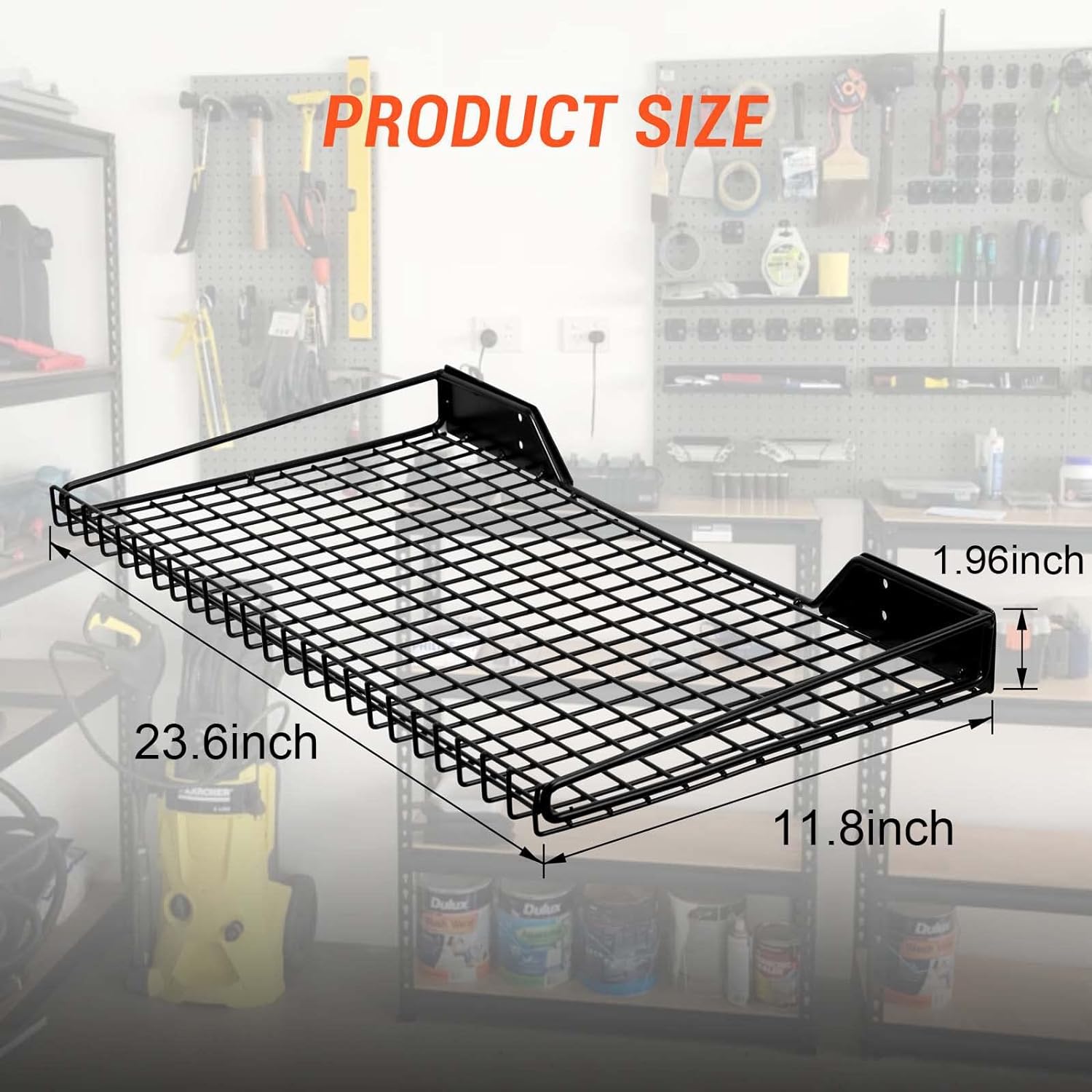 Wallmaster Garage Wall Shelf 2 Pack 23.6"x11.8" Wall Mount Heavy Duty Metal Shelves Mesh Storage Rack for Garage, Office, Basement and Kithcen, max Load 65 lbs (Black)