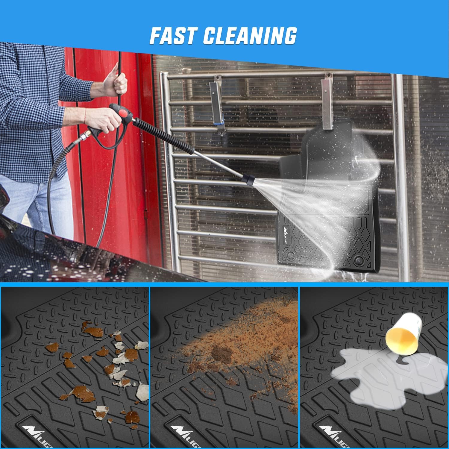 - FAST CLEANING - You can wash off messes that end up on your floor mats in seconds with soap and water. In some cases, a simple spray of the hose will do the trick.