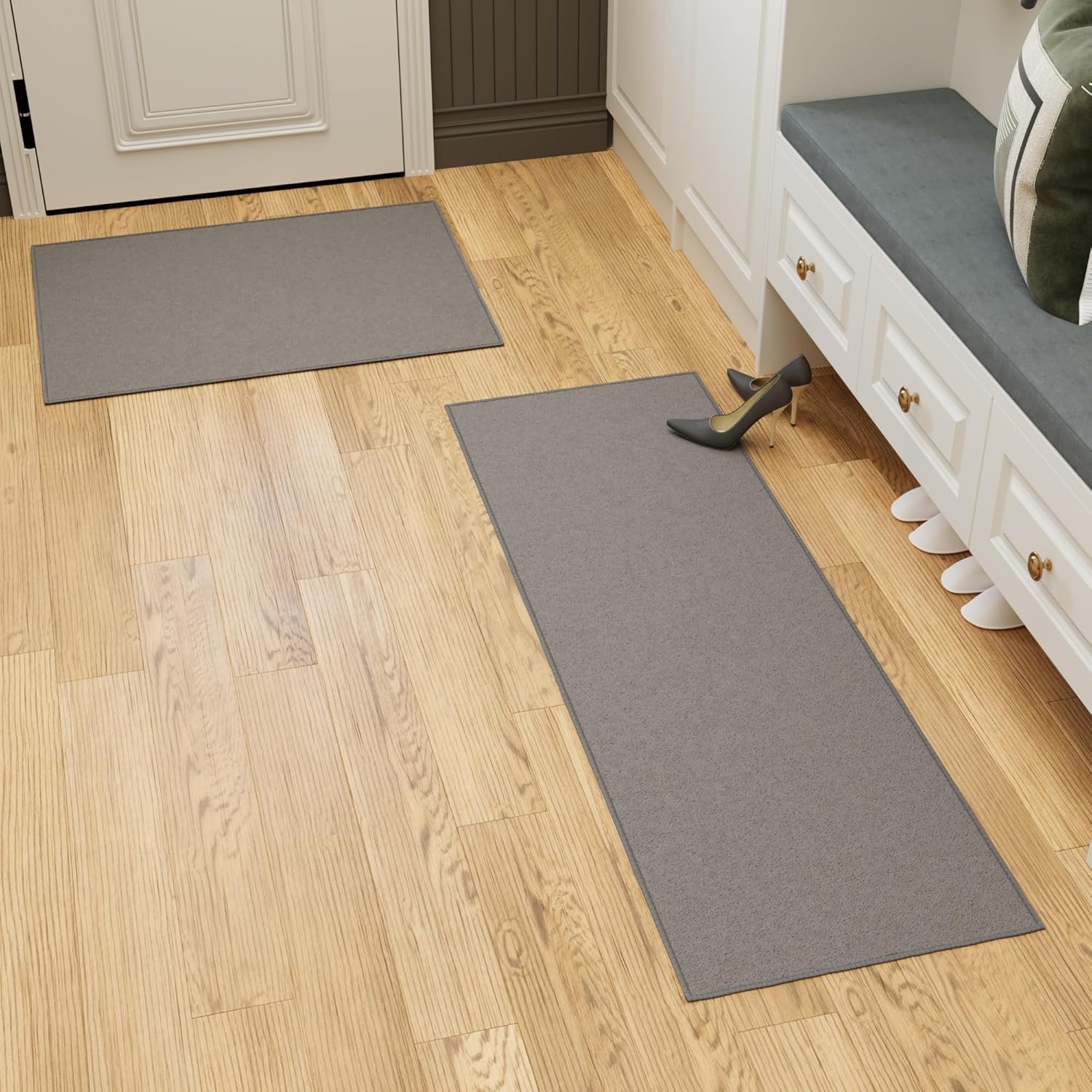 Ottomanson 2-Piece Kitchen Rug Set - Non Slip, Runner & Small Area Rug - Solid - 20" x 59" & 2'3" x 3' - Durable, Stain Resistant for Entryway, Bedroom and Bathroom, Gray