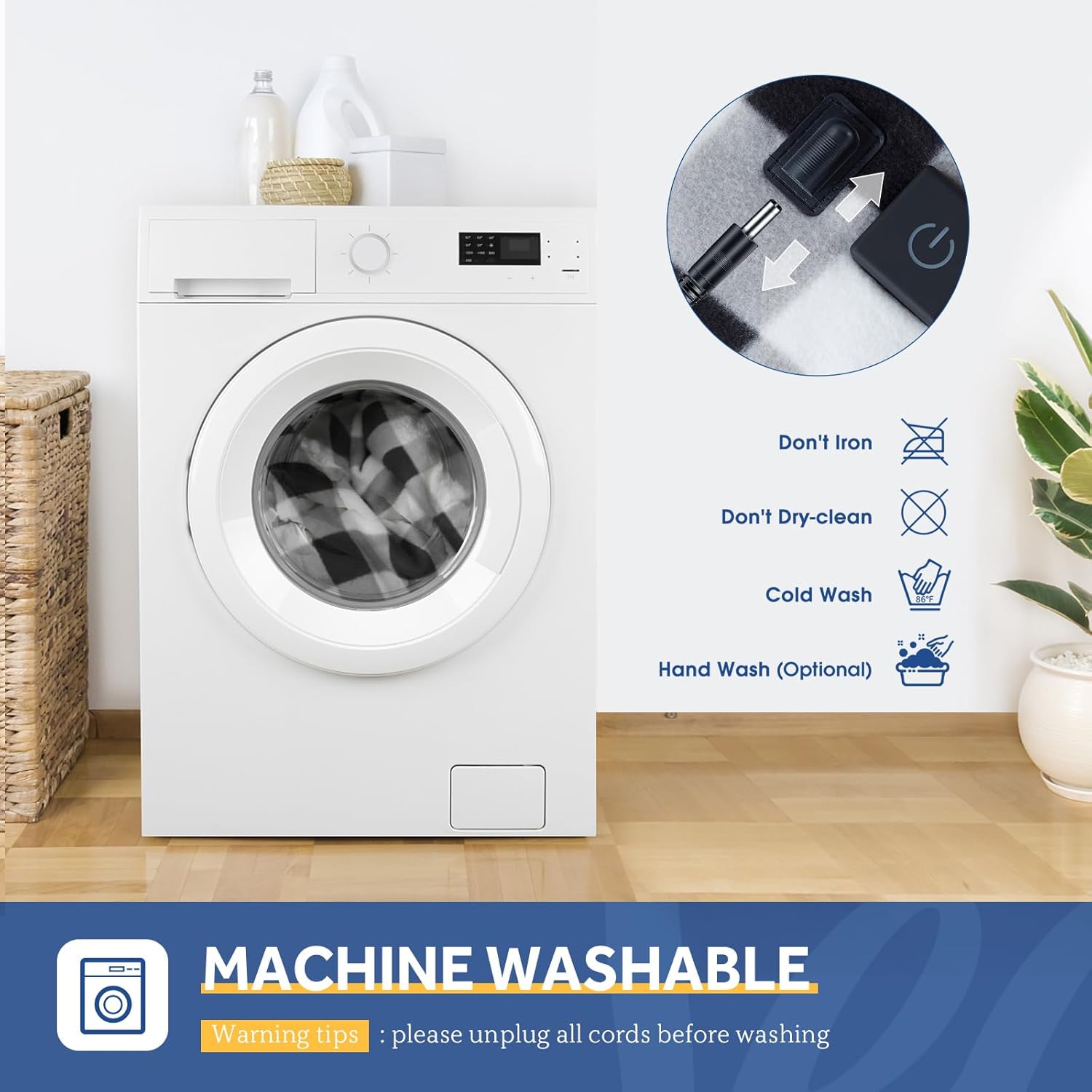 - 【Extended Power Cord】Portable electric blanket specifically designed with heavy duty insulated cord, 85 inches long power cord, don't worry about being restricted to heated positions, Say goodbye to the constraints of limited heated positions, you can enjoy the cozy warmth wherever you choose to sit, guaranteeing a truly enjoyable journey.