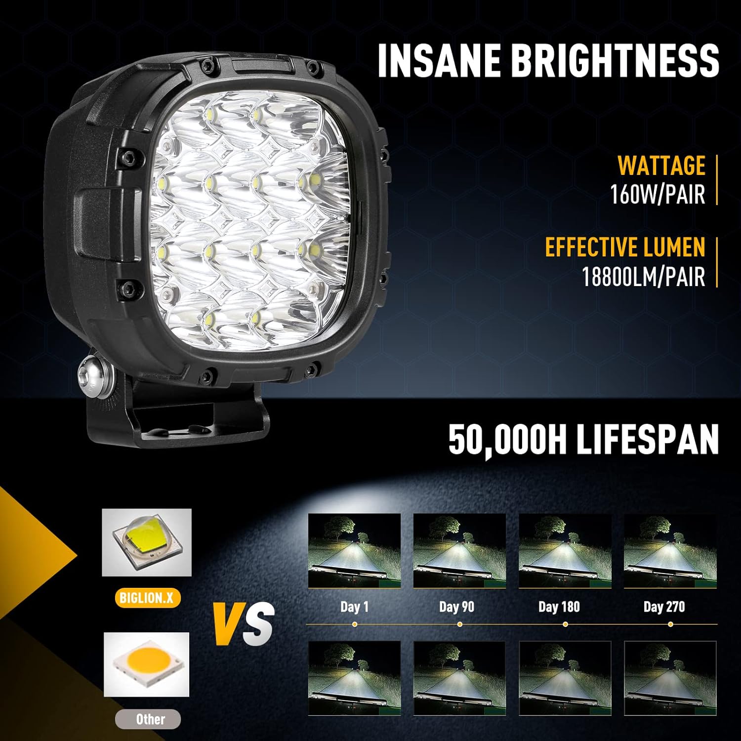 BIGLION.X 4 Inch 160W 18800LM Round LED Offroad Lights Driving Spotlights Fog Light Super Bright Bumper Off Road Driving Light with Wiring Harness IP68 for Pickup Trucks SUV ATV UTV