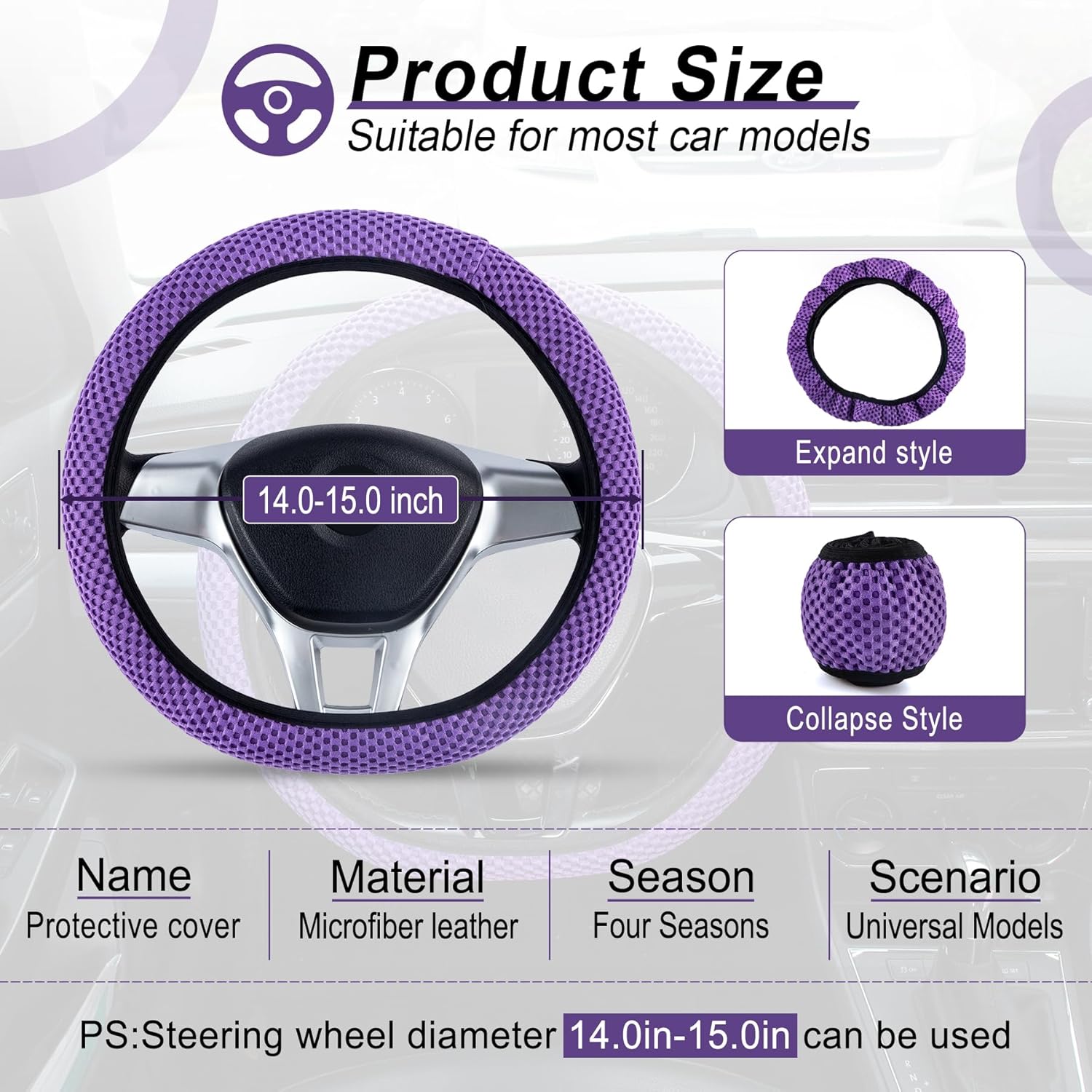alpmosn Elastic Stretch Steering Wheel Cover, Universal Interior Accessories Steering Wheel Cover for Women & Men, Breathable Microfiber Ice Silk, Anti-Slip, Odorless, Easy Carry(Purple)