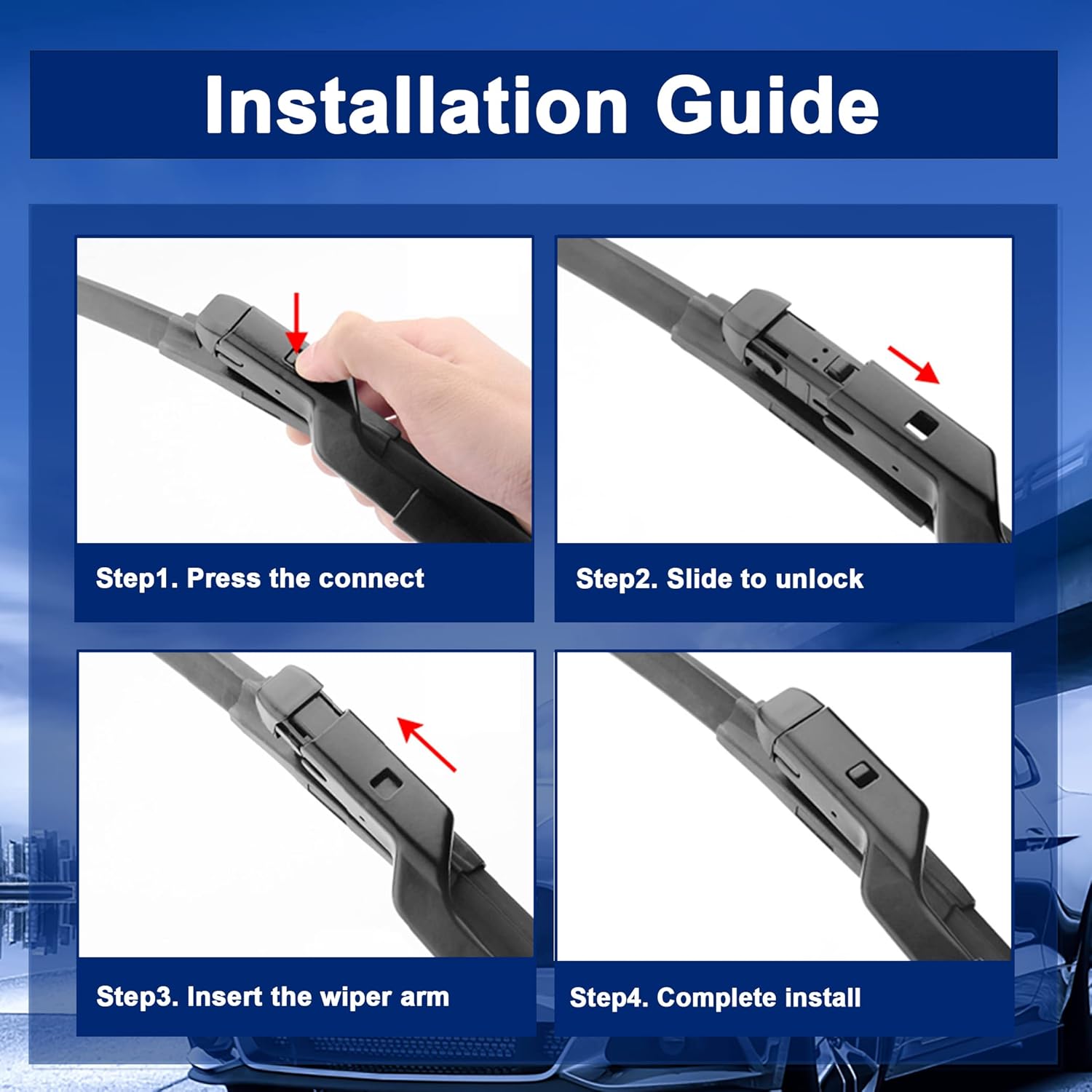 - {WIPER PERFORMANCE}: Natural rubber material making sure the wiping is the best, quiet wiping without judder or squeaking, resistant and a long service life.