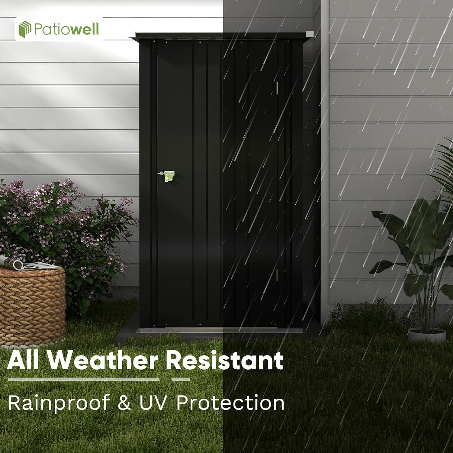 Patiowell 3 x 3 FT Outdoor Storage Shed,Small Garden Tool Storage Shed with Sloping Roof and Single Lockable Door, Outdoor Shed for Backyard Garden Patio Lawn, Black