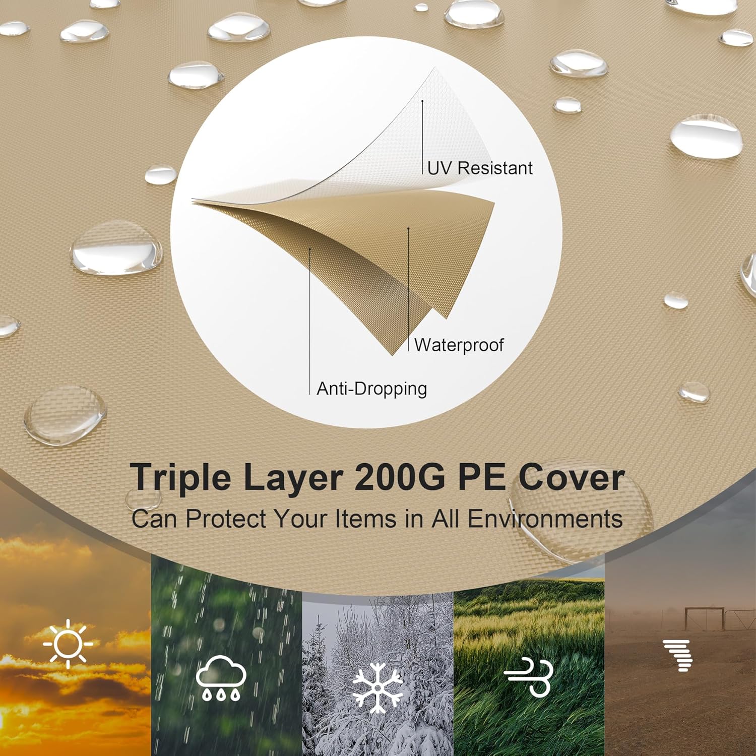 - 【Waterproof Fabric】200g High quality Polyethylene top cover of carport provides resistance to wind and rain; Providing up to 200 square feet of UV protection, Blocks 90% of sun's rays