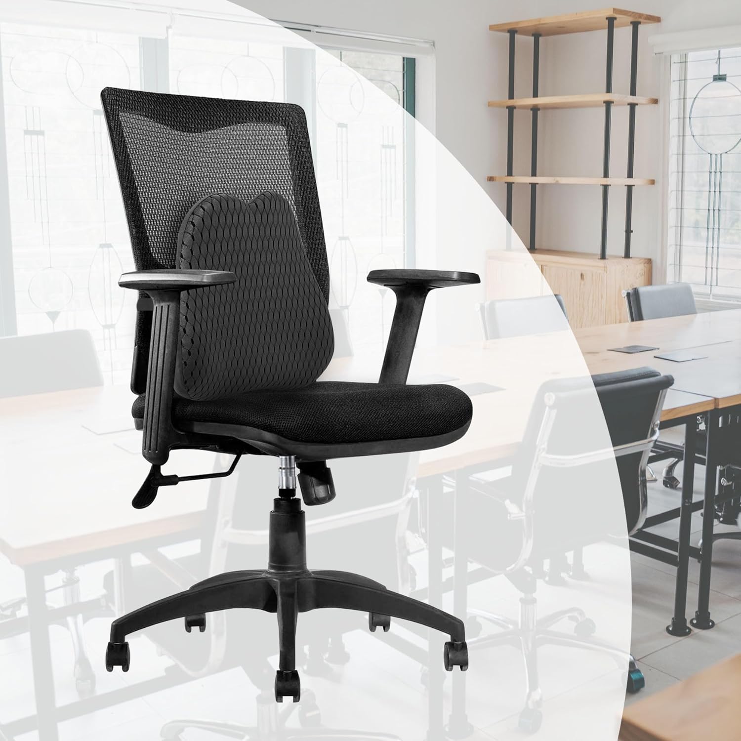 Lumbar Support Pillow for Car and Office Chair, Back Support Pillow for Car Seat, Memory Foam Back Cushion for Low Back Support and Pain Relief (Black)