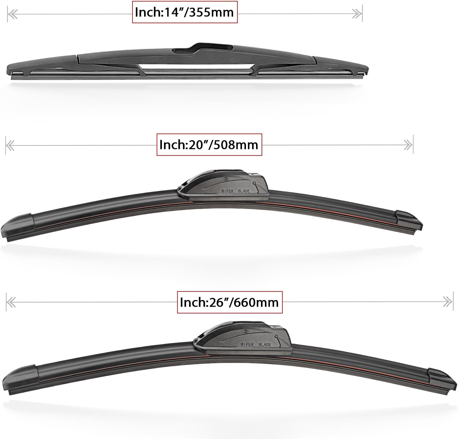 Windshield Wiper Blades Replacement for 2007-2014 Ford Edge Original Factory Quality Front Rear Wipers Blade Set for My Car - 26" 20" 14" (Pack of 3)