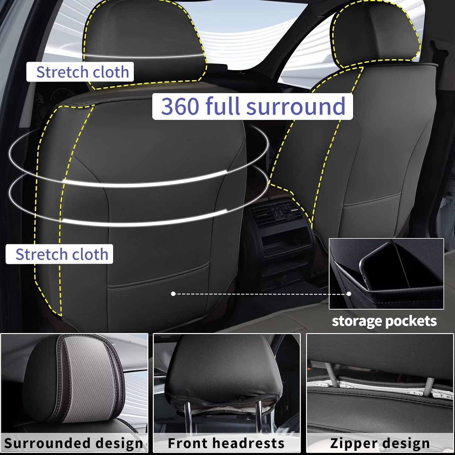 - đăHIGH-QUALITY MATERIALăïŒSurface material made of high quality faux leather, soft, durable and waterproof. The delicacy perforations bring breathable comfort experience.The middle part use high rebound sponge,create top resilience for maximum comfort during your drive. Non-slip fabric is used on the bottom layer,keep the covers in place .